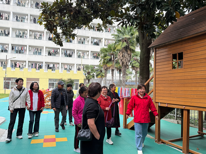 活动中,党支部组织老教师们参观园区看看崭新的外墙露面,新添置的玩具和开辟的种植区——锄禾园,边走边向老教师介绍园所的安全改造、课程创新。老教师们频频点头:“现在的孩子真幸福,园所发展得这么好,我们打心底里高兴!”。