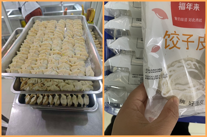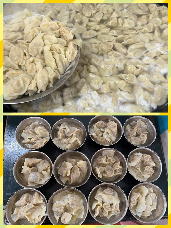 制作现场一派忙碌景象,食堂师傅们分工协作、默契配合,一个个饱满圆润的水饺在手中快速成型,饱满的馅料将饺皮撑得鼓鼓囊囊,模样十分讨喜。沸水入锅,水饺在锅中翻滚跳跃,渐渐变得晶莹剔透,浓郁的香气弥漫在食堂的每个角落。