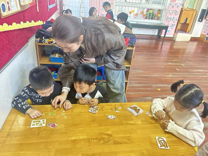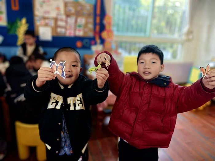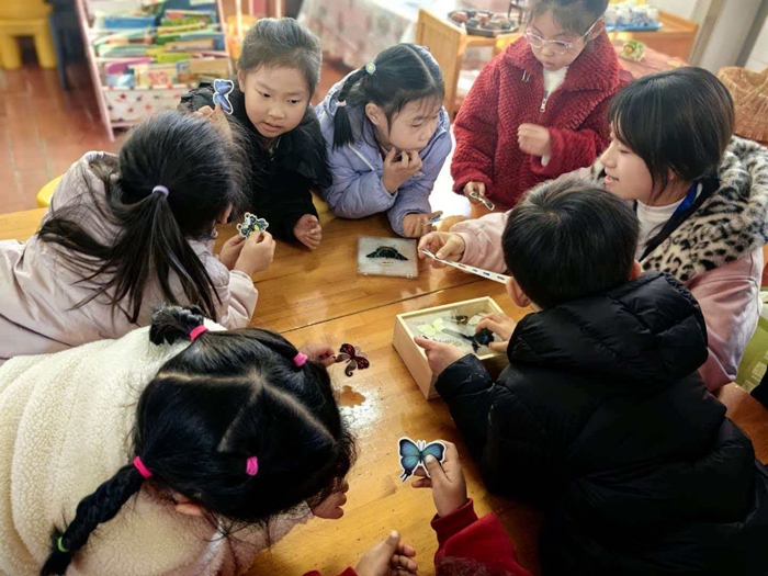 哥哥姐姐们耐心的带领小朋友们认识了蝴蝶的构造、生长周期和小习惯,从卵到幼虫再到破茧成蝶,生命的奇妙肉眼可见孩子们用小手捏起立体昆虫模型“蝴蝶小习惯”的知识点揉进游戏里举着亲手“孵化”的蝴蝶模型眼里闪着对自然的好奇光。