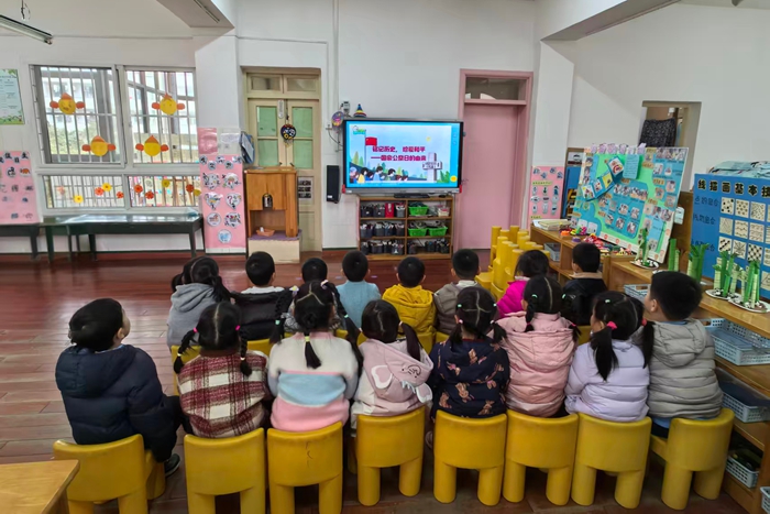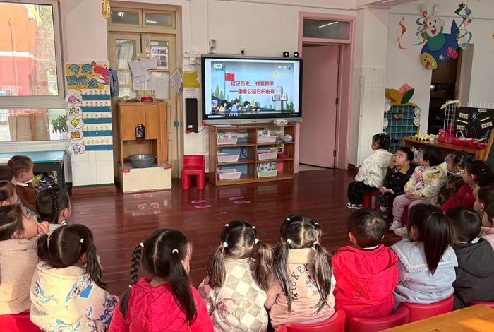 借助直观的视频与灵动的手势舞,各班级让爱国主义教育更具感染力。大二班、小三班通过视频带领幼儿走进南京大屠杀的历史现场,详细介绍国家公祭日的时间、由来与纪念方式,让孩子们在视觉冲击中感受战争的沉重,更加珍惜当下的幸福生活。小一班以“谁在保护我们的幸福生活”为切入点,播放画面温和、解说童趣化的主题视频,配合简单的互动分享,帮助幼儿初步感知历史,萌发缅怀先烈、珍爱和平的朴素情感。大一班、中二班则用手势舞传递爱国之情,孩子们舞动稚嫩的小手,在悠扬的旋律与整齐的动作中,诉说对先烈的敬意与对和平的向往,初步感知先烈的奉献精神,懂得当下幸福生活的来之不易。
