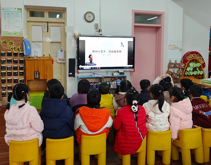 绘本是幼儿了解世界的重要窗口,各班级通过精心挑选的绘本,让孩子们在故事中感知历史与和平的意义。大三班师生共读《我叫小豆子,住在南京城》,跟随小豆子的视角回望南京城的往昔,在细腻的文字与画面中,体会战争带来的伤痛,懂得和平的珍贵。中三班的老师则带着孩子们走进《南京那一年》,用轻柔的讲述还原那段令人痛心的往事,让孩子们明白国家公祭日设立的初衷,在心中立下“铭记历史、珍惜和平”的小小誓言。