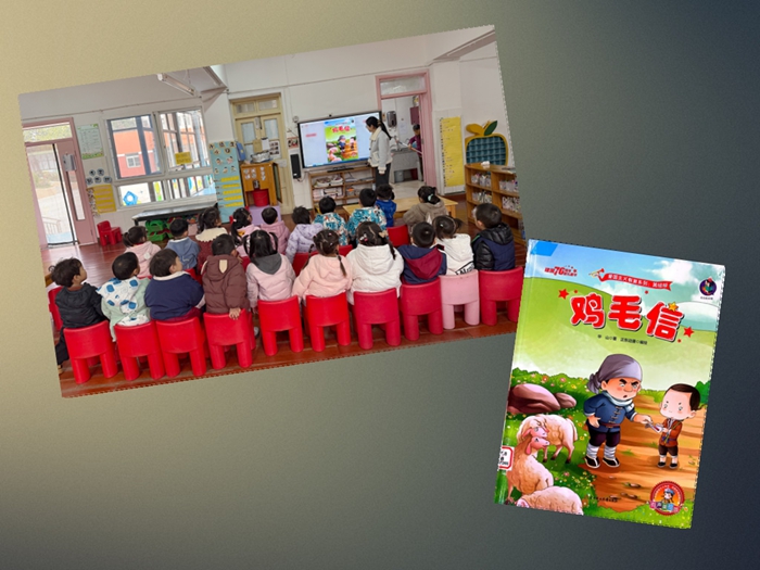 小二班结合小班幼儿认知特点,选择《鸡毛信》这本色彩鲜明的绘本,生动讲述小英雄海娃机智送鸡毛信的故事,通过互动提问引导幼儿感受海娃的勇敢与担当,还穿插模仿 “送信” 的趣味环节,让爱国启蒙教育在快乐体验中落地。