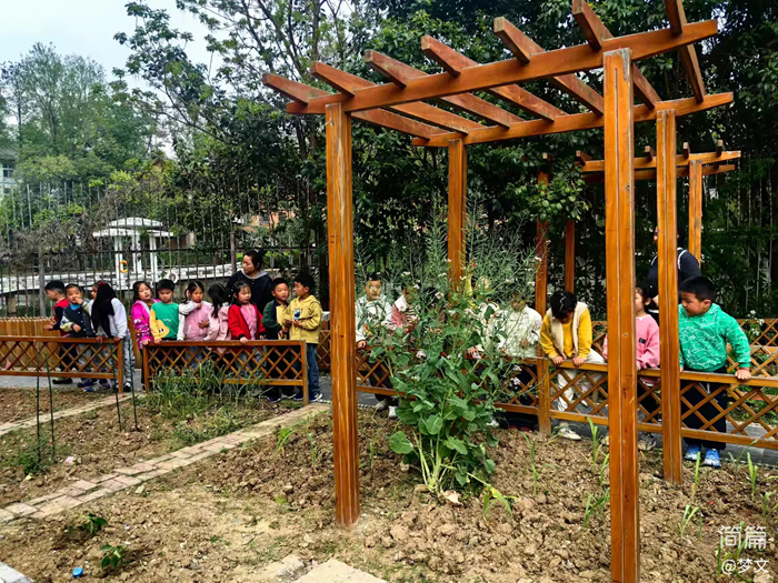 孩子们走进锄禾园,开启沉浸式实践体验。菜园里一株五彩油菜花独自绽放的美丽很突出,色彩斑斓的花吸引了孩子们的目光。小朋友们近距离观赏,仔细观察油菜花的形态。