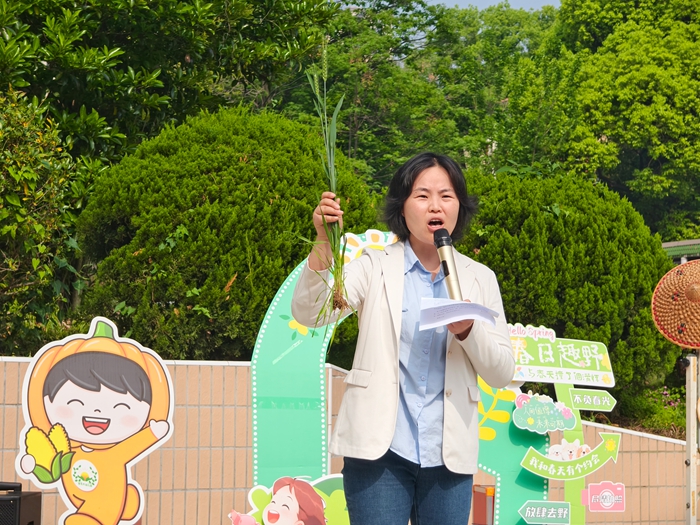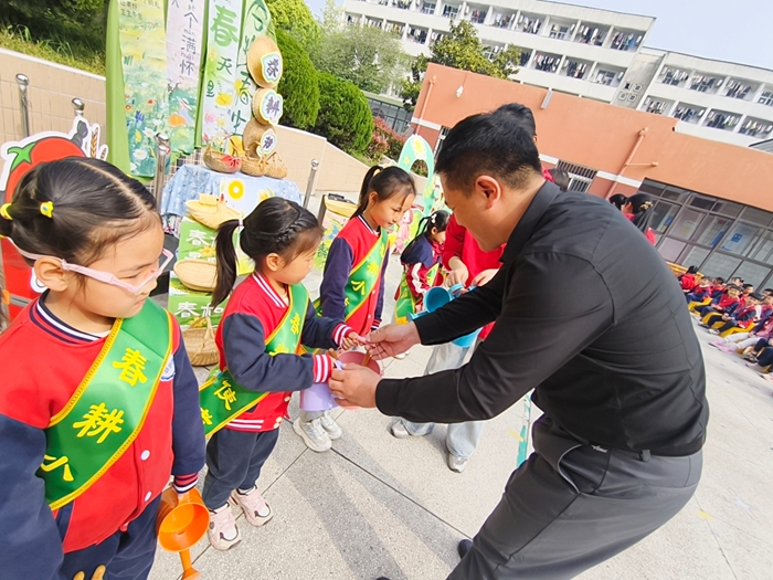 本次活动以开幕式与班级分组实践相结合,仪式感与趣味性兼具。开幕式上,各班级幼儿有序列队入场,主持人热情开场,宣告春耕节正式启幕。园长在致辞中寄语幼儿,希望大家亲近泥土、认识自然,在劳动中学会照顾、懂得珍惜,像小树苗一样健康阳光成长。随后,总务部副部长邵家伟和三位为各班幼儿代表——春耕小使者们赠送了春耕农具,小小农具承载着劳动的责任与春日的期盼。