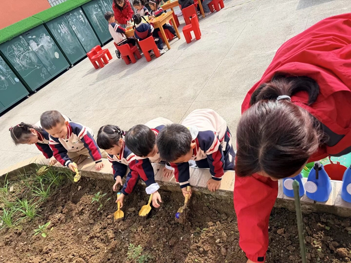 本次春耕节是农大幼儿园园本课程——“农耕乐园课程”的重要组成部分,将劳动教育、自然教育与生命教育有机融入幼儿一日生活。幼儿在亲手播种中感知生命成长,在分工协作中提升动手与交往能力,在沉浸式体验中萌发热爱自然、尊重劳动的美好情感。家长志愿者全程参与看护与指导,进一步搭建起家园协同育人的坚实桥梁。