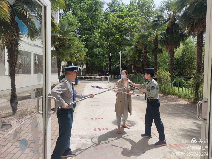 当有手持武器的危险人物徘徊在门外,企图闯入幼儿园时,安保人员及时发现并奋力阻止。