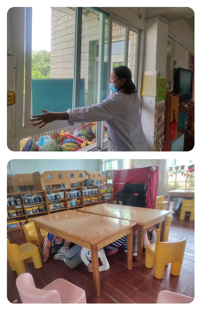 在带领孩子们回到教室后,我们的老师迅速关窗关门,并引导孩子们躲在桌子下,保护他们的安全。