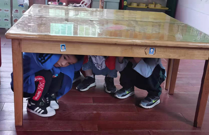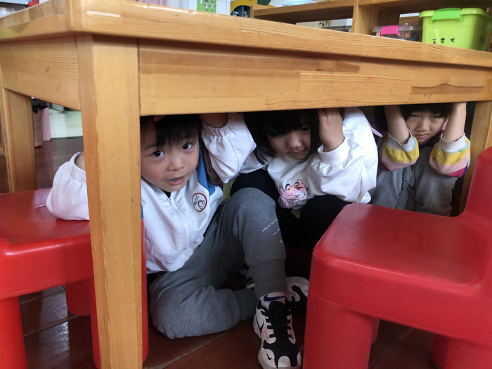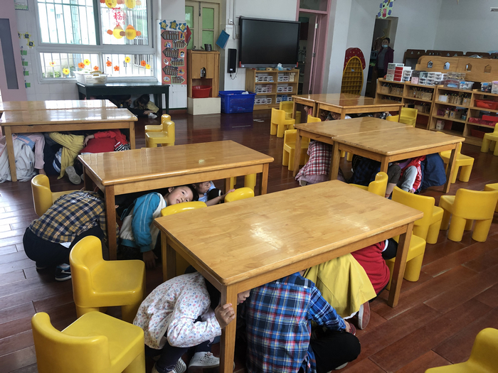 随着330分警报声响起,防震疏散演练开始,各小组人员快速到位。各班级老师立即告知幼儿“地震了,不要慌”,并指挥幼儿紧急避险,指导幼儿双手护头。