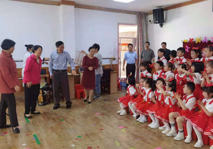 书记勉励幼教工作者继续努力,注重安全管理,提高教育质量,为教职工安心工作解除后顾之忧。