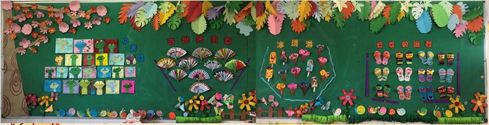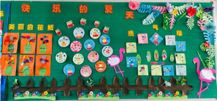 在主题环境创设中,各班级结合主题教学活动创设了具有本班特色的主题墙面,展现了异彩纷呈的班级主题文化设计,各班的主题墙均能抓住幼儿年龄特点,体现师生共同参与,采用多种表现形式,追求环境与幼儿的互动效应,并凸显了教育轨迹和教育价值。每一个主题墙的创设,不仅是课程内容、教学活动的反映,更是幼儿学习过程和结果的体现,充分体现了环境育人,环境美化人的理念。