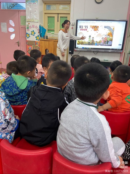 各班老师通过讲故事、看视频等多种形式帮助孩子们了解重阳节的来历和意义,让孩子们用眼睛去观看,用耳朵去聆听,用心灵去感受。