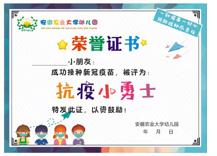 幼儿园精细制作了小奖状,近期会发给接种疫苗的小朋友,鼓励孩子们加入到抗疫小勇士的队伍中!