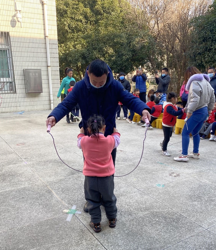 和爸爸妈妈们一起玩亲子游戏更加快乐。大班的“亲子跳绳”,中班的“运球乐”,小班的“你投我接”,每一个游戏都让大家热情澎湃,孩子们露出了比任何时候都灿烂、天真的笑容!这一刻,家长们为了孩子们的成长,暂且放下了原有的沉稳与威严。不再有任何羞涩、不再有任何内敛,仿佛他们也回到了曾经的童年时代!