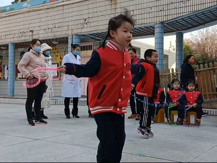 大班的哥哥姐姐们开展的是跳绳比赛,你看他们挥动的跳绳如金蛇狂舞,跳动的身影如彩蝶纷飞,现场气氛无比高昂与欢腾,激情与紧张齐飞,友谊与比赛同存!