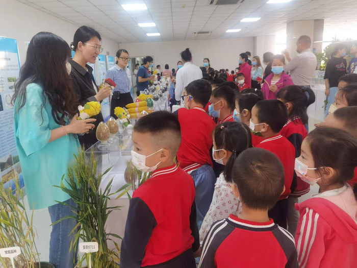 生长在农业大学里的“小小农娃”们对农业知识充满了好奇。种子是什么样的?农作物是怎么生长的?新冠病毒的疫苗有什么作用?怎么区分山羊和绵羊?带着问题,59日上午,安徽农业大学幼儿园大班的孩子们在老师们的带领下,来到了位于生物科技楼的走进科技 你我同行”科普成果展