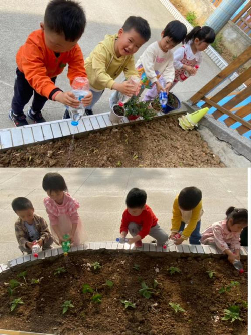 各个班级充分利用家园共育的优势,在老师和家长的共同努力下,播种了各式各样的蔬菜瓜果。怀揣着激动的心情,孩子们来到了种植园,有的负责浇水,还有的负责给种植园起名。种植园里一片欢声笑语,热闹极了!