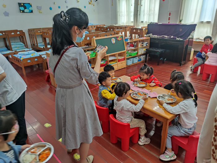 会议的最后,正是孩子们中午就餐的时间,邢有琼园长邀请各位家长去班级看一看幼儿园的伙食与孩子们的就餐情况。