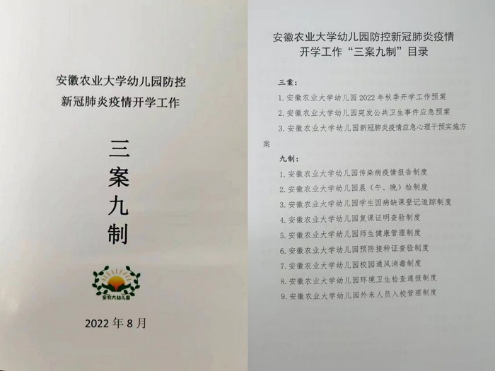 幼儿园根据本学期实际情况,更新了《安徽农业大学幼儿园防控新冠肺炎疫情开学工作三案九制》
