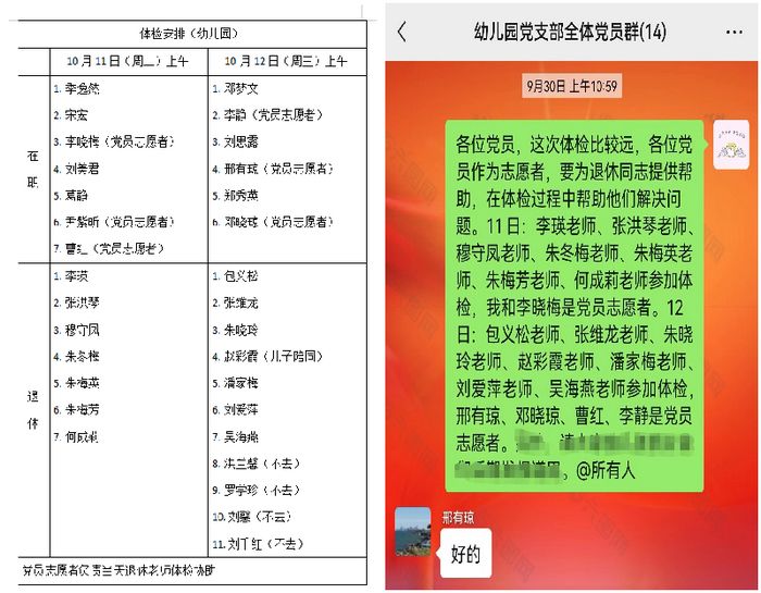 为帮助退休职工顺利安全地完成一年一度的健康体检,101112上午,幼儿园党支部的党员开展体检志愿服务,为退休职工体检助力。