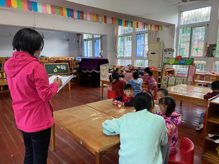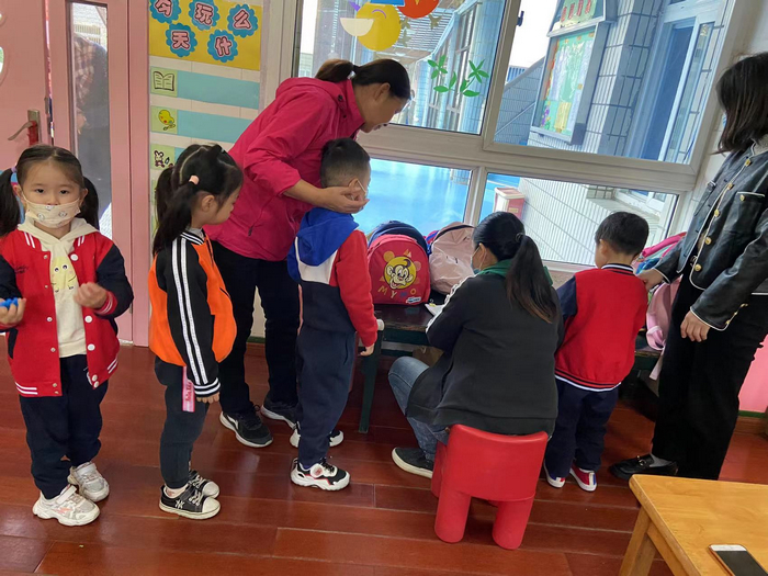 本学期有四十多个孩子参加了幼儿园的延时服务,幼儿园开设两个混龄班级,每班配有三位值班老师、每天安排一位行政人员和一位保安值班。由于孩子来自各个班级,值班老师对孩子和家长的熟悉程度不够,幼儿园提供了孩子和接送家长人手一张延时服务卡”,严格执行凭卡接人、交接登记等制度,有针对性的保障每个孩子的安全。每天下午放学后本班老师带队将孩子们送至延时班级,并进行登记和交接。行政人员在延时过程中轮流进行检查、登记和指导。