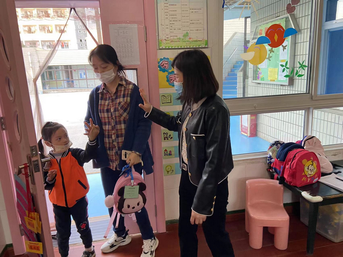 傍晚时分,家长携带延时卡进入班级与值班老师交接,老师们认真核对延时卡,家长签字,登记接走时间。幼儿整理玩具,摆放好座椅,携带书包,大手牵小手安全离园。
