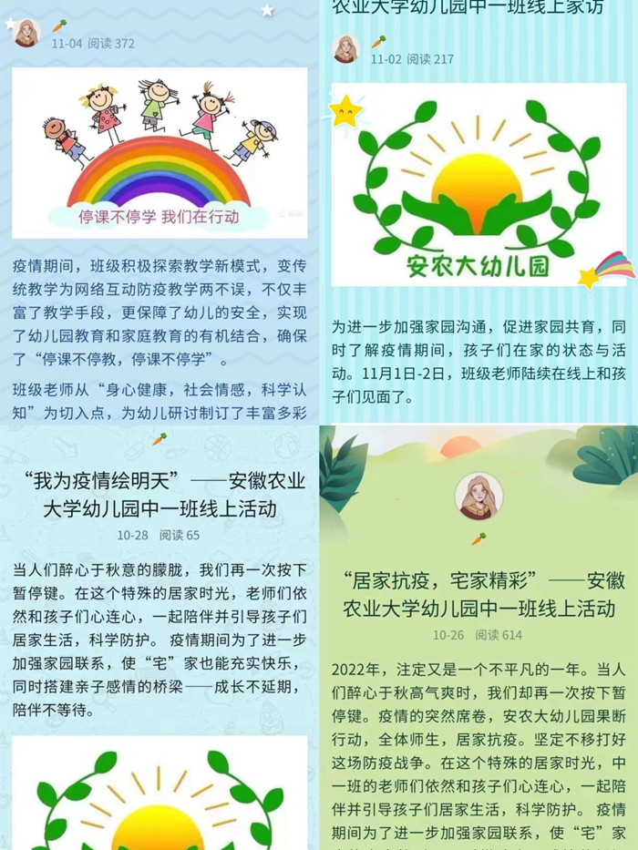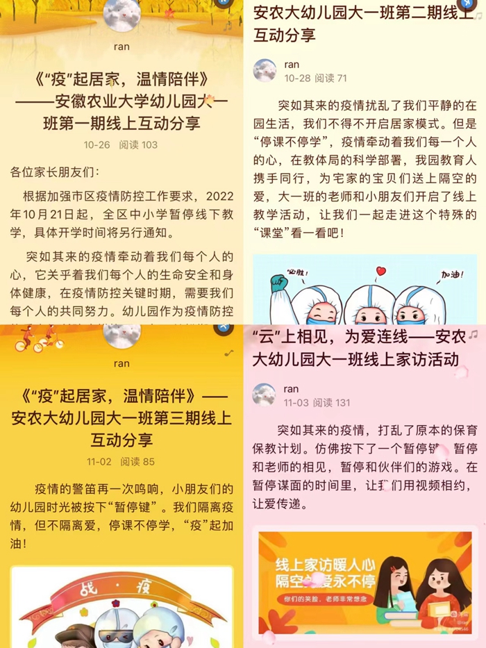 上一条:静守初心抗疫情,自我提升迎花开——安农大幼儿园教师居家基本功提升 下一条:防疫“心”行动,暖心“云”家访——安农大幼儿园开展线上家访活动