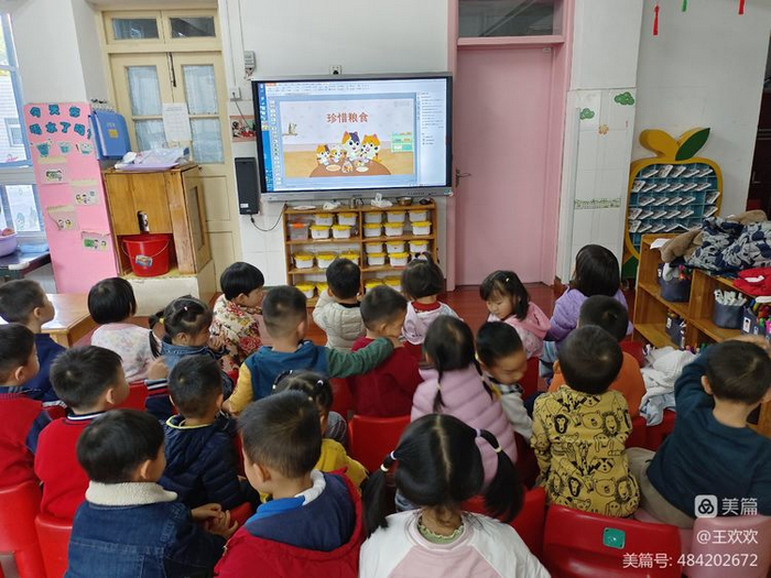 中一班根据孩子的年龄特点,通过看视频、听故事等方式开展丰富多彩的集中教育活动。让孩子们了解粮食对人类的重要性,明白每一粒粮食都是农民伯伯辛勤劳动的成果。