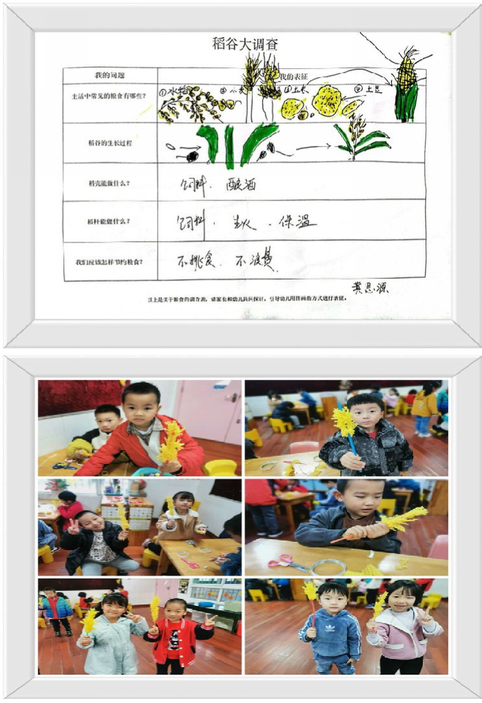 稻谷都是怎么长大的呢?让我们一起去调查了解一下吧大二班的小朋友开展了一次“稻谷大调查”,体会粒米虽小犹不易,莫把辛苦当儿戏。还用手工的方式制作了稻穗。