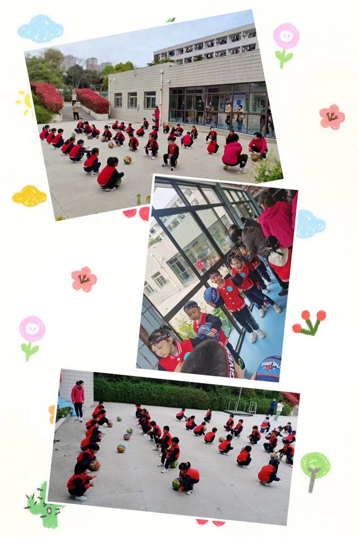 中班的拍球比赛需要身体的灵活性和协调性,孩子们全神贯注地拍动,眼睛里投射出坚毅的光芒,和不可忽视的力量。这就是运动的力量!