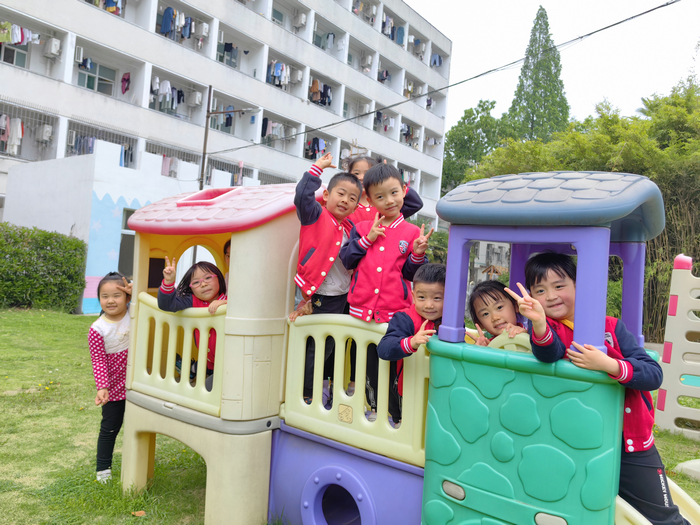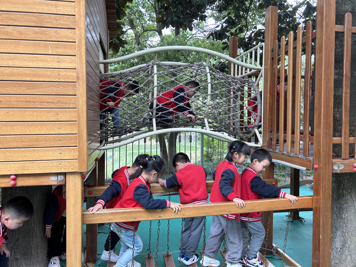 户外游戏中,滑梯玩具、大型积木,孩子们自主选择进行攀、爬、跑、跳、钻……幼儿间合作拿取材料,多种玩法的游戏,阳光下健康活泼的小身影瞬间吸引了家长们。