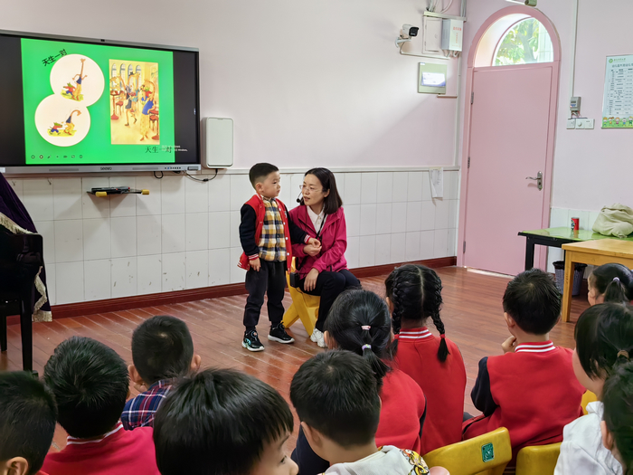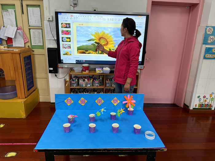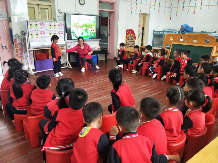 集体教学活动中,各班教师根据幼儿的发展水平和学习兴趣,以多媒体信息技术为载体,设计可供幼儿操作探索的游戏活动,幼儿跟随教师一起在活动中感知、探索、发现、体验、倾听、表达,实现知识经验的增长。