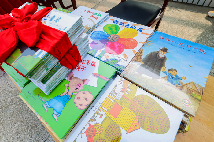 校党委副书记裴树东代表关心下一代工作委员会向幼儿园的孩子们赠送了精美绘本150余册。
