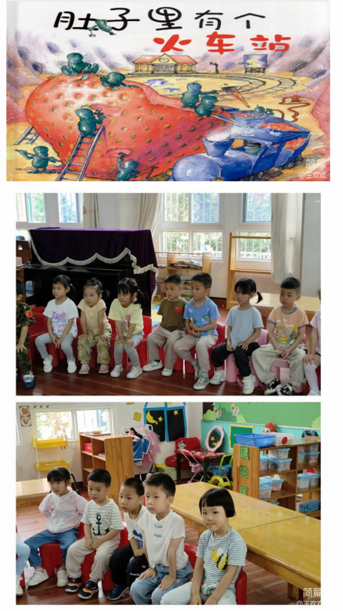 首先,李安妈妈给孩子们讲了《肚子里有个火车站》的绘本故事,通过巧妙的比喻,用火车站和小精灵们的工作方式和环境,了解食物从入到出,消化、吸收、排泄的整个过程很好的帮助了孩子们理解肚子里的消化系统的作用和顺序,大家听得可认真了!也知道了吃不健康的食物带来的危害以及吃有营养的食物会给我们带来的好处,养成不挑食的好习惯。