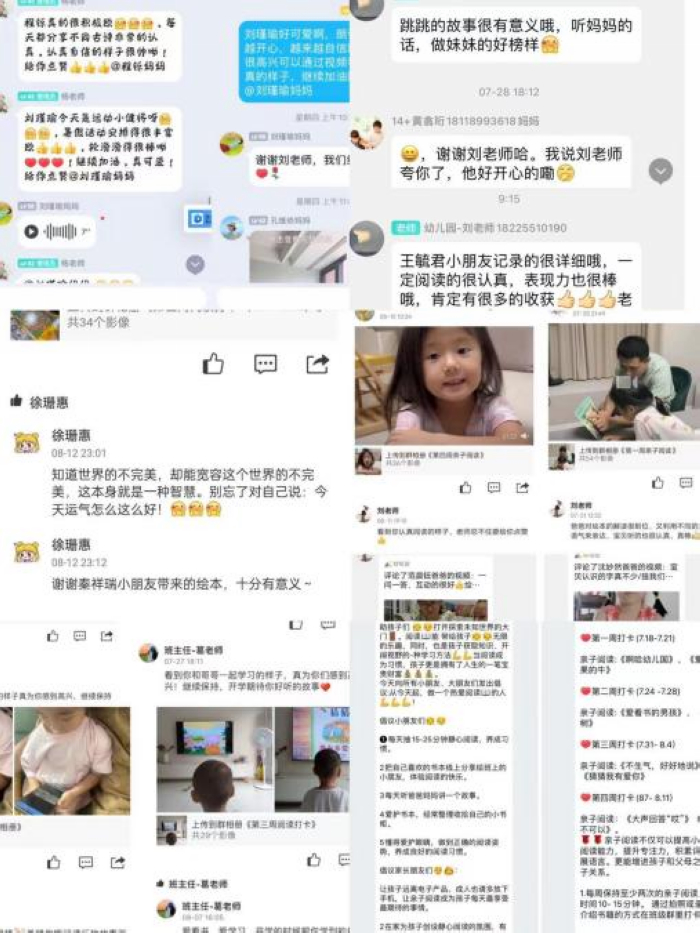 活动开始前,班级老师从多方面在班级群中与家长互动,引导家长进一步了解:亲子阅读是一种高质量陪伴的方式。通过家园互动,了解家长在亲子阅读中遇到的问题,共同探讨亲子阅读的有效方法。