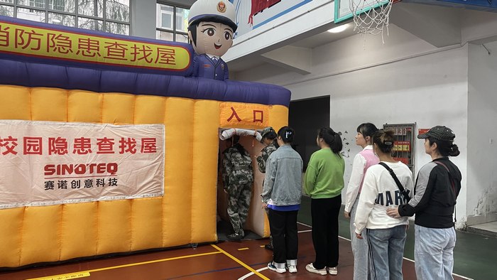 六位新进教职工先后进入“校园隐患查找屋”、“模拟烟雾逃生体验馆”、“模拟灭火体验馆”三个场馆。在体验中,促进了消防安全知识的学习,在操作中,加强了消防安全知识的应用。