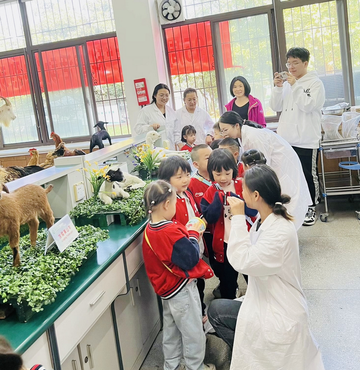 小三班萌娃们去参观美丽的校园,有轻纺楼前绿色的植物,还有动科院可爱的小动物…认识了不同品种的树木后,小朋友们收到了家长精心制作的树叶书签,树叶的脉络清晰地呈现在书签上,小朋友们看到后不约而同地发出感叹,太美了!在动科院哥哥姐姐们精心准备的回答问题得礼物环节,小朋友们认识了乌龟、鳖、螃蟹…等水产动物。在动科实验室里还有各种各样的动物标本,有不同品种的羊、鹅、鸽子等小动物。