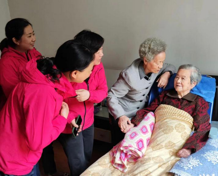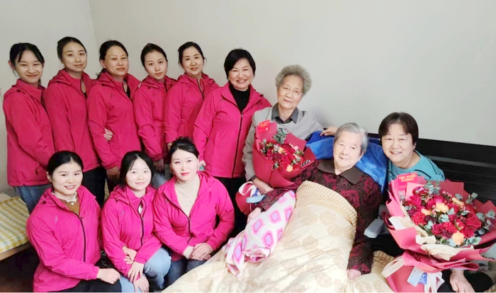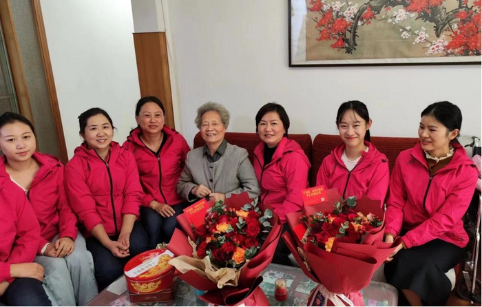 煦暖金秋,情满重阳。时值重阳佳节,为弘扬中华民族“爱老、敬老、尊老”的传统美德,表达对老前辈的感激与敬意,10月25日下午,在党支部书记尹紫昕、支委李晓梅的带领下,安农大幼儿园部分党、团员老师带着全园师幼的深情厚谊,前往看望97岁高龄的幼儿园第一任园长刘千红老师和83岁高龄的第二任园长李瑛老师
