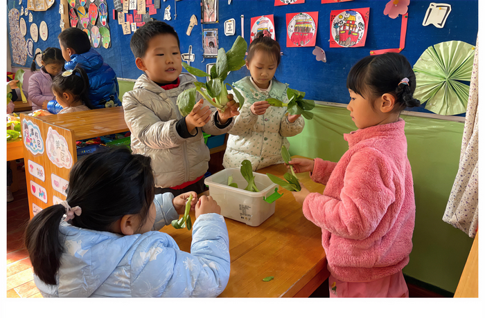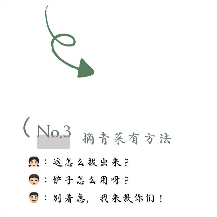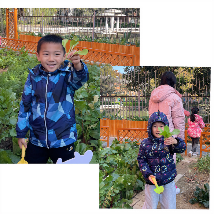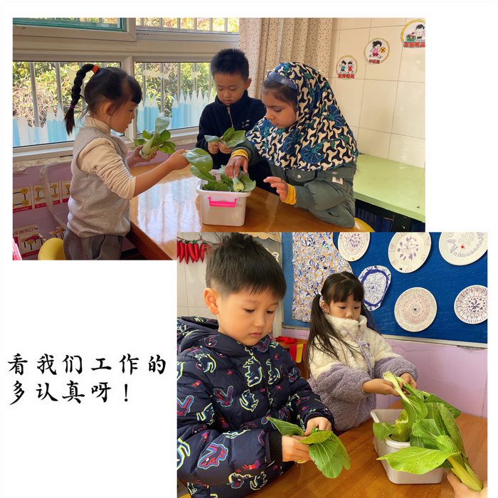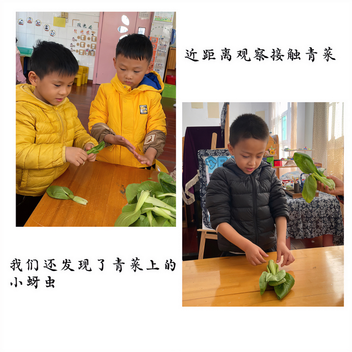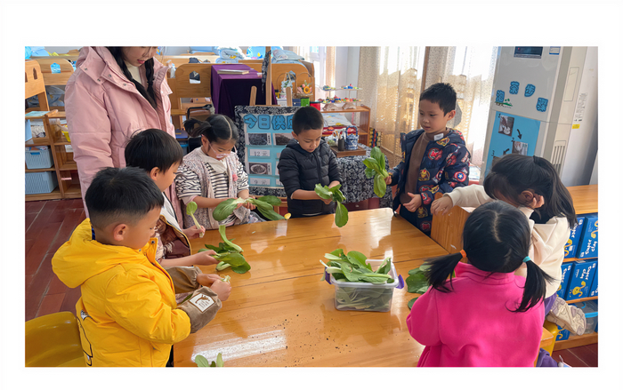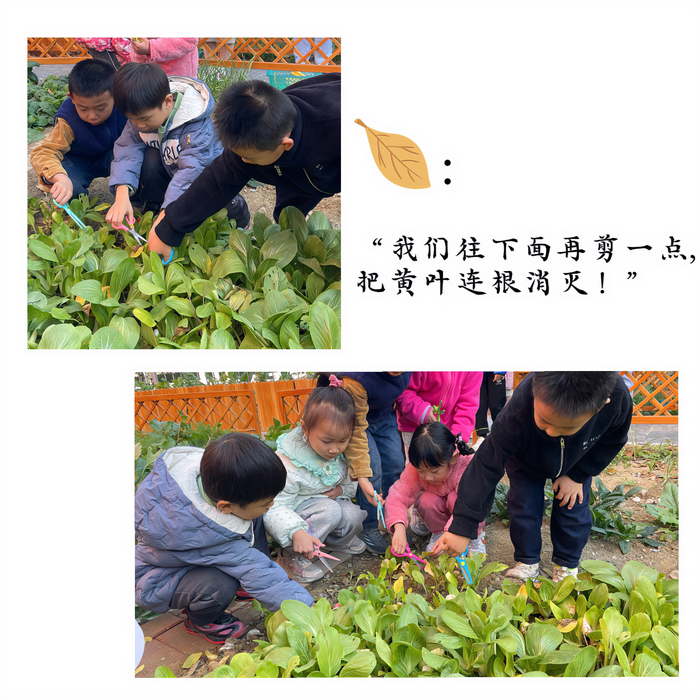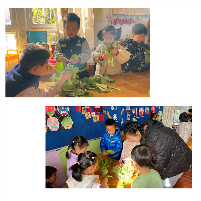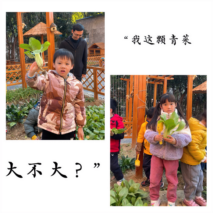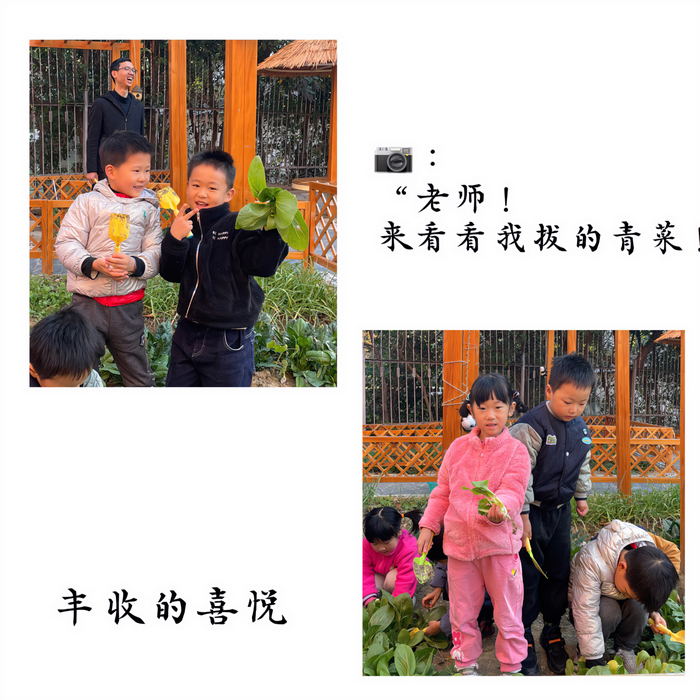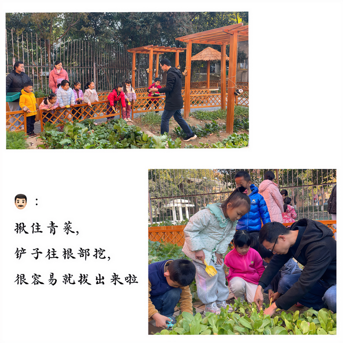 3-6岁儿童学习与发展指南》中指出“幼儿天性就喜欢亲近自然,对植物和动物充满好奇。”种植区是幼儿园环境教育中重要的组成部分之一,它为孩子提供了动手操作、亲自管理、长期观察的机会。为丰富幼儿生活、亲近自然,体验种植的乐趣,大三班开启了一场“青菜”采摘活动。