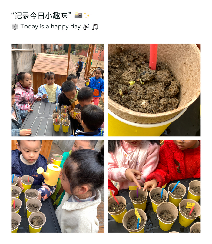 兴趣是学习的动力,有了兴趣幼儿才可以积极主动参与关于种植的一切活动。十一月我们种了油菜花种子,可是随着时间的推移,孩子们发现我们小菜园的油菜花种子长的很慢。孩子们争先恐后的讨论“它怎么还不长大”以此激发幼儿对种植探索的兴趣。