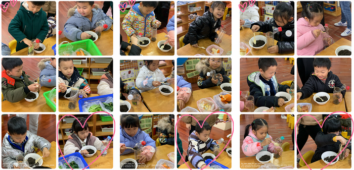 厨余化春泥,堆肥乐趣多。落花、果皮、菜叶等,这些看似无用的“垃圾”,实则是制作堆肥的好材料。通过这次活动,幼儿们观察到堆肥材料的变化,体验到了堆肥乐趣,也在他们心里埋下了一颗守护绿水青山的种子。