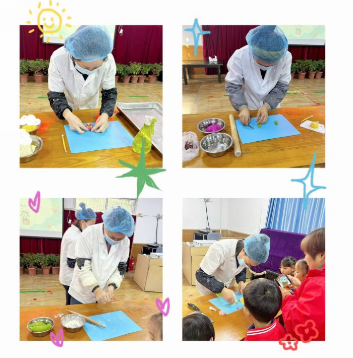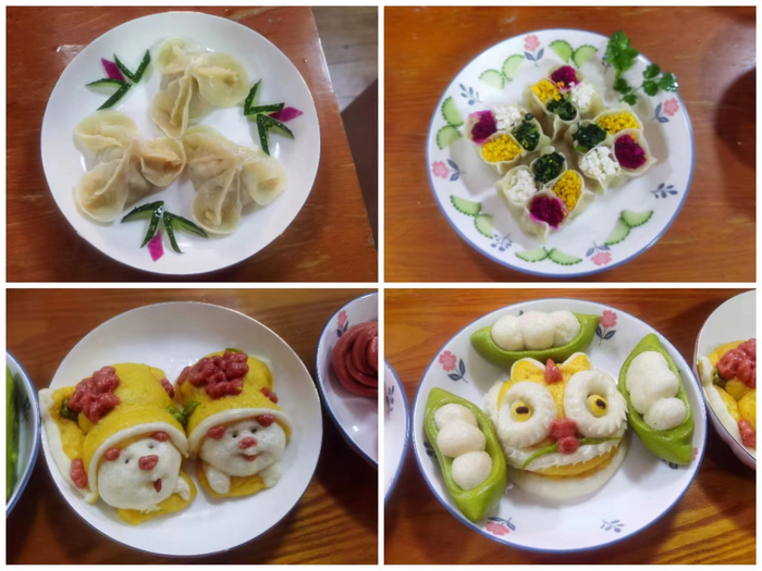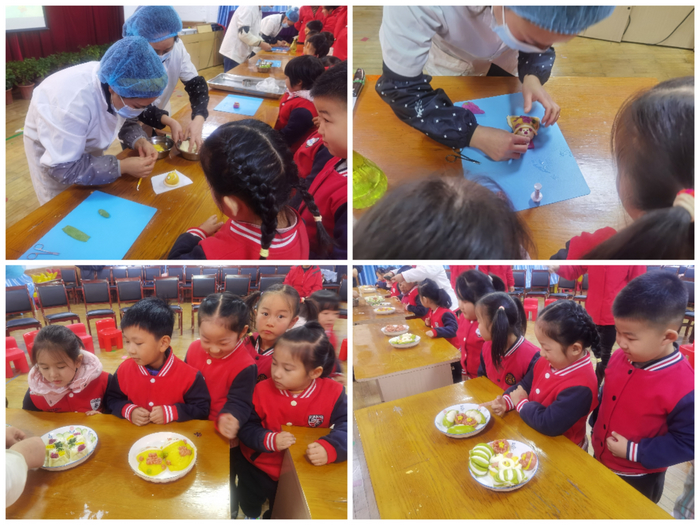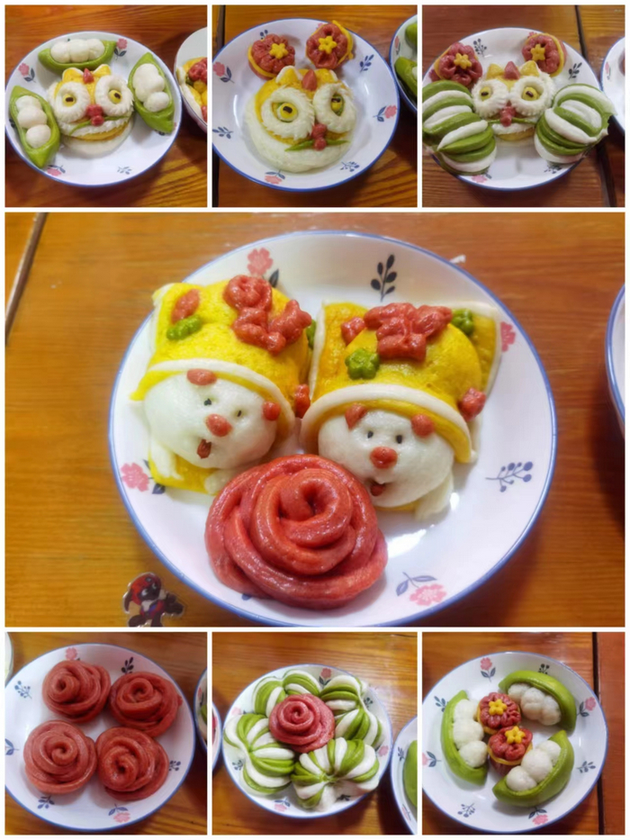 紧接着,就是我们期待已久的厨艺展示了!食物对于现在的孩子来说已经不是填饱肚子的东西了,想让他们老老实实的把食物吃完,有时候真得有些方法才行。因为食物的色、香、味、形都可能影响他们的进食兴趣,所以食堂阿姨每天都想尽办法利用各种健康食材,做孩子想吃、爱吃的花样面点