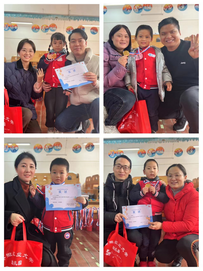 孩子们最喜欢的当然是颁奖环节。幼儿园为每位参加活动的小朋友准备了“奖牌”和“礼物”,这是属于他们光荣的时刻。在场的爸爸妈妈和老师们为每一位小运动员的拼搏精神喝彩!运动会带给孩子的不仅是奖台上的荣誉,更重要的是在体能加强的同时收获了自信、勇敢的良好品质。生命不息,运动不止。在阵阵欢声笑语和助威呐喊声中安徽农业大学幼儿园“冬日乐无限”亲子运动会,圆满结束。