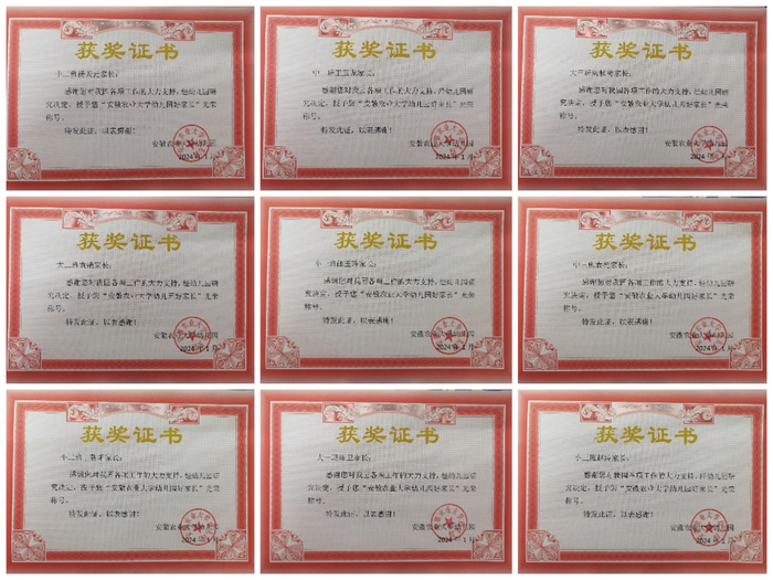 经过各班级的推荐,这九位家长获得“安徽农业大学幼儿园好家长”荣誉称号。