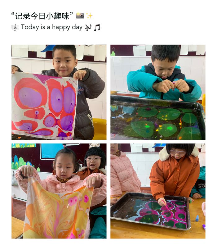 此次活动的开展,让幼儿以丝巾为载体,水为纸,在感受世界非物质文化遗产水拓画的魅力的同时,也体验了手工制作的乐趣,感受到艺术创造之美,激发了孩子的内在潜能。再次感谢吴昕怡、夏萍邑和温芊羽三位小朋友妈妈的精心准备,给小朋友们带来了这么特别的一次艺术活动!本周五就是我们一年一度的“三八”女神节啦,小朋友们也可以把创作的丝巾送给家里的女性长辈,表达自己的祝福!