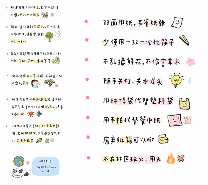 植树节的意义不仅是“植树”,和孩子们谈一谈保护草木的意义,把环保渗入孩子们的生活中。
