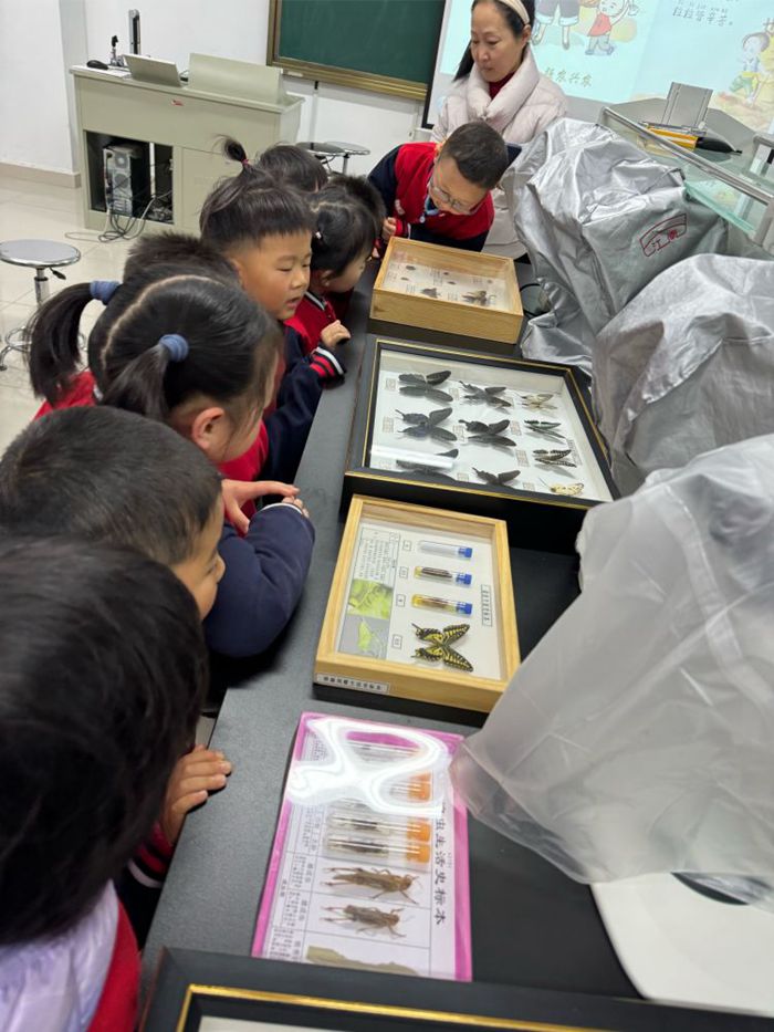 孩子们还来到了植保学院,听周老师讲了关于昆虫的故事,看一看昆虫标本!