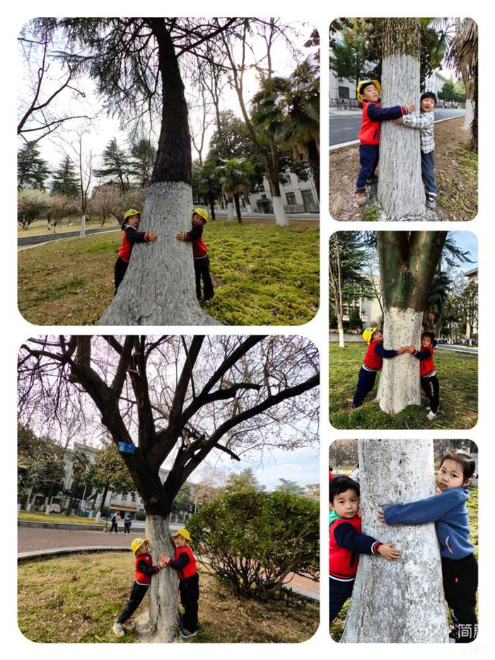 抱树是一种生命的链接,通过这样一个简单的动作,从自然中得到治愈和快乐,拥抱树木也拥抱彼此。小三班的孩子们触摸坚实粗犷的树干,孩子们获得安全感和力量感,感觉就好像树在默默鼓励小朋友们:“你也是一颗坚强挺拔的小树苗呢!