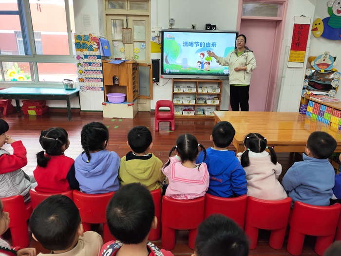 为了让孩子们了解清明节的历史和由来,感知中国的传统文化,老师以故事讲解、图片展示、视频播放等形式使幼儿了解清明节的时间和来历,了解清明节踏青、放风筝、踢蹴鞠、扫墓等节日习俗,进一步感受了中国传统文化的深远底蕴,激发幼儿的民族自豪感。