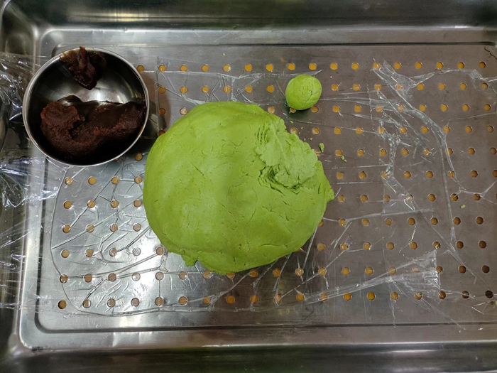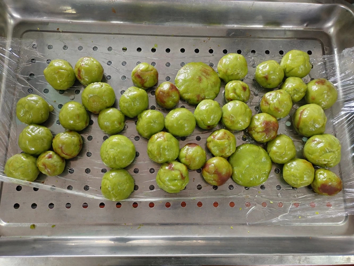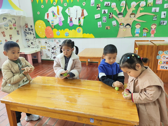 宝贝们小心翼翼的动手尝试,搓出来的青团各个圆溜溜。