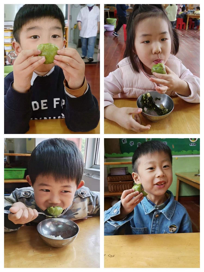 青团具有很高的营养价值,能够滋补身体、增强体力。它的绿色代表着生机勃勃的生命力,人们通常以吃青团的方式来表达对生命的珍视和尊重。孩子们体验了劳动所带来的成功与喜悦,这糯嫩绵软的青团,承载着这个季节的气息与味道,留在孩子们的记忆里!